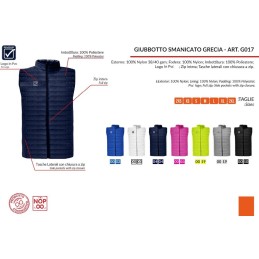 Caratteristiche: Esterno: 100% Nylon; Fodera: 100% Nylon; Imbottitura: 100% Poliestere; Cappuccio regolabile e removibile; Logo PVC al braccio; Tasche laterali con chiusura a Zip;